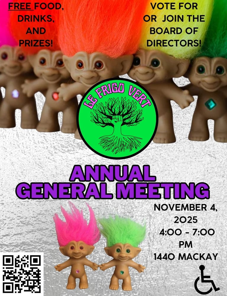 Le Frigo Vert has been a constant joy in my life since I started at Concordia. I’ve been taken care of in many ways whether that be affordable lunches, the food basket, or stimulating workshops. Le Frigo Vert rules!